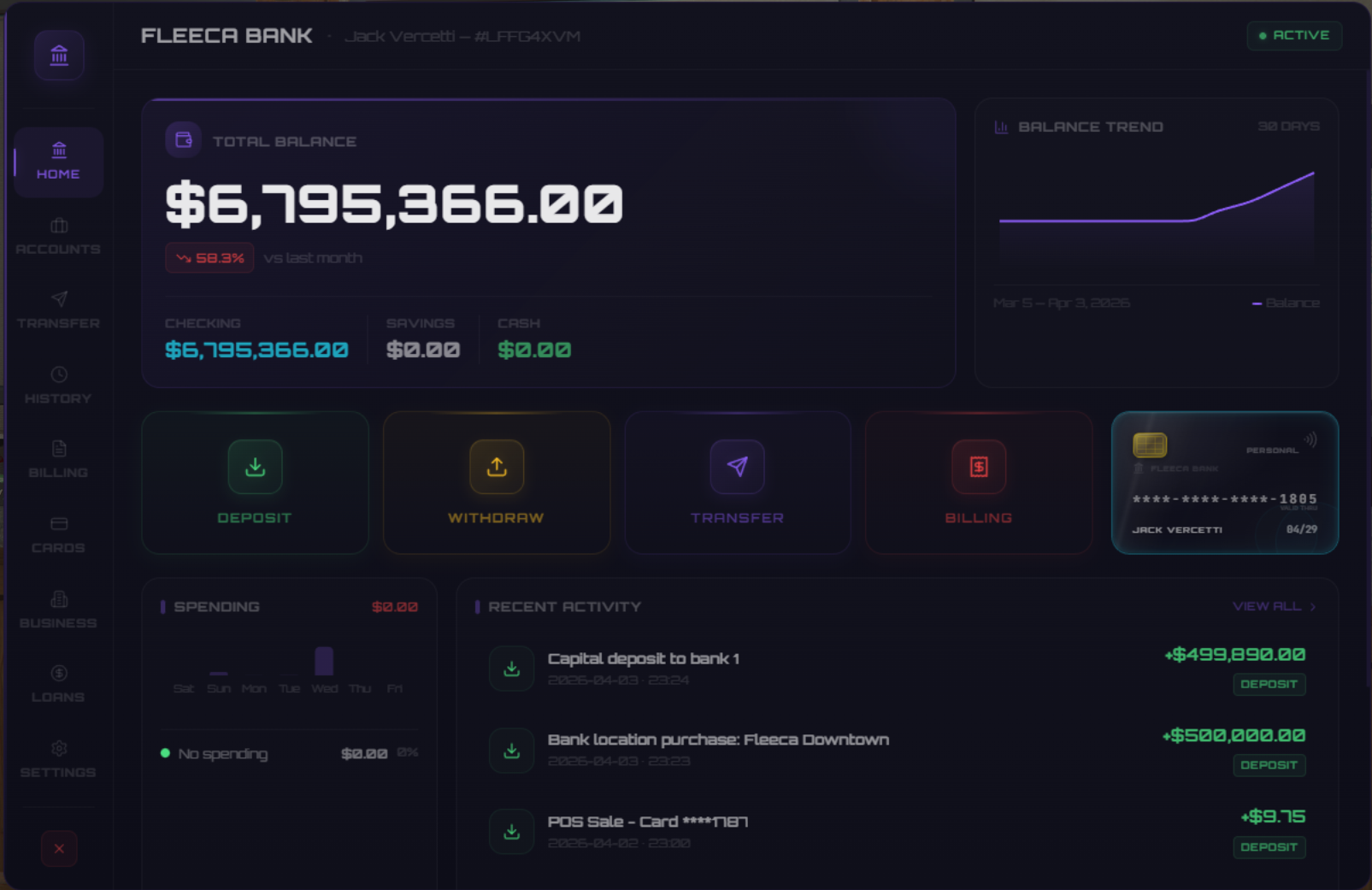 Business owners get dedicated accounts with full financial management. Track revenue, expenses, and profits with detailed transaction logs. Separate your business finances from personal funds and keep your operation running clean—or dirty, we do not judge.