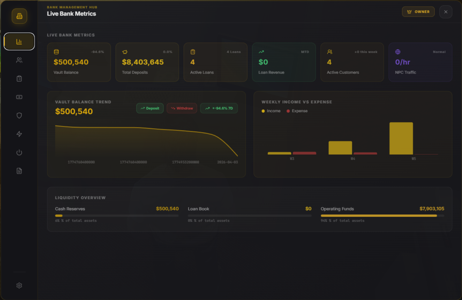 - Player-Owned Banks: Own, upgrade, and manage your own bank branch with staff and NPC customers.